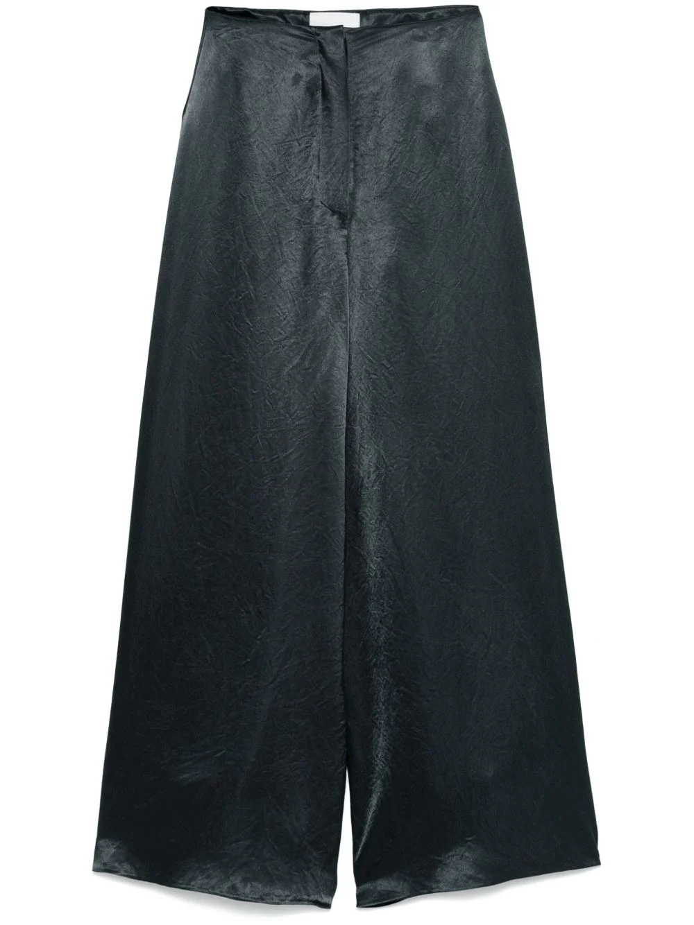 satined trousers Highlights - Dark green - Concealed rear hook and zip fastening - Wide leg Imported Composition Fabric 100% SIZE & FIT Model measurements Height 5 ft 11 in(1.8 m) Bust/Chest 31.49 in(80 cm) Hips 35.82 in(91 cm) Waist 24.8 in(63 cm) FittingInformation Designed with a wide-leg cut, these trousers allow for a close fit at the waist and offer a loose and roomy fit over the leg