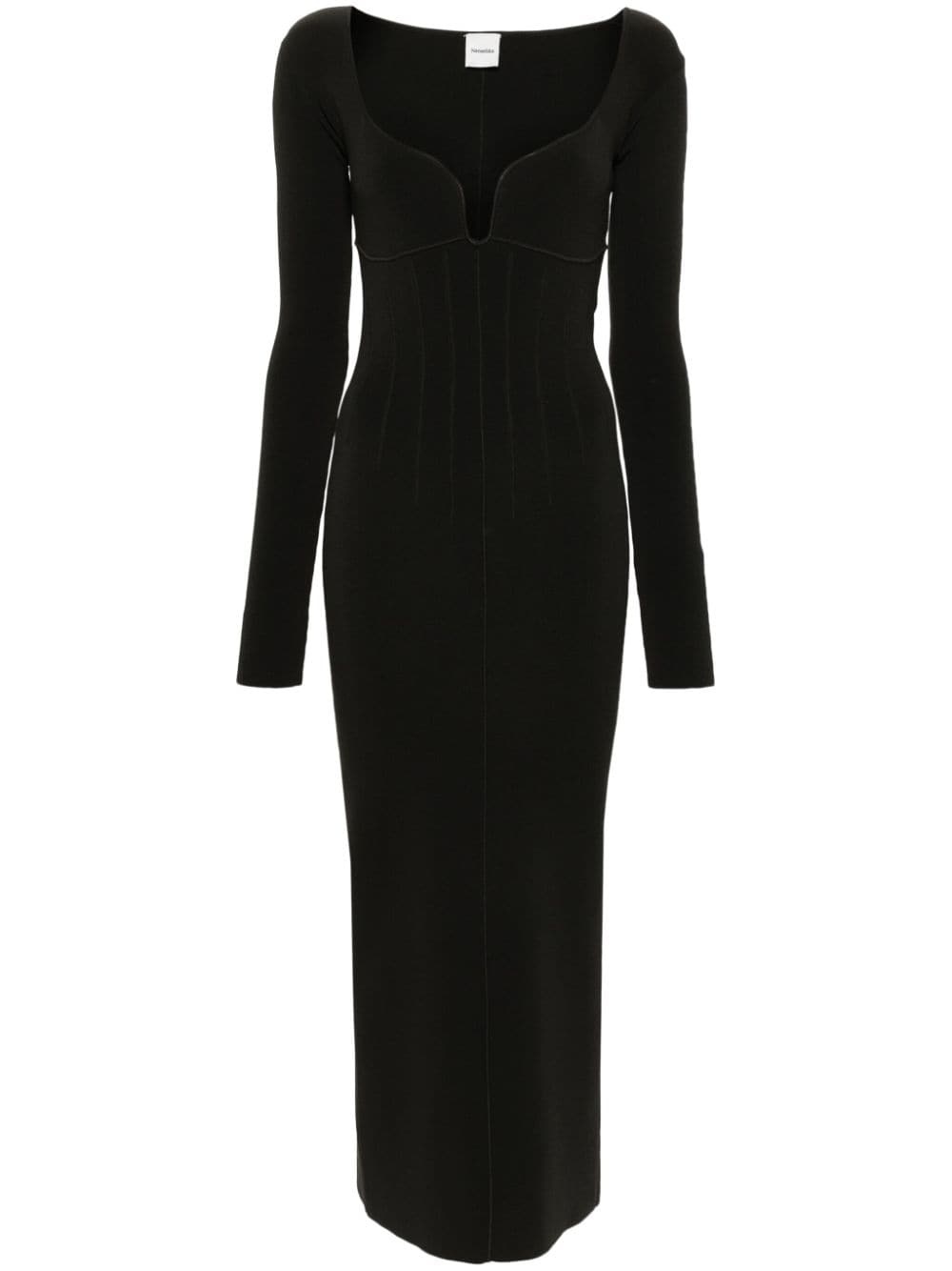 seam-detail ribbed midi dress Highlights - Black - Recycled viscose blend - Fine ribbed - Seam detailing - Sweetheart neck - Long sleeves - Slim cut - Column silhouette - Rear slit - Straight hem - Mid-length Imported Composition Recycled Viscose 63%, Nylon 37% SIZE & FIT Model measurements Height 5 ft 11 in(1.8 m) Bust/Chest 31.49 in(80 cm) Hips 35.82 in(91 cm) Waist 24.8 in(63 cm) FittingInformation Designed for a close fit throughout The vented hem offers movement at the rear Made with a midweight knit, this piece offers some stretch Washing instructions Dry Clean Only