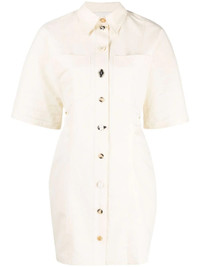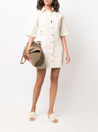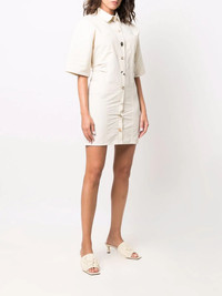 short-sleeve shirt dress Highlights - White - Recycled nylon-cotton blend - Slim cut - Button-down collar - Short sleeves - Two chest patch pockets Imported Composition Recycled Nylon 72%, BCI Cotton 28% SIZE & FIT Model measurements Height 5 ft 9 in(1.74 m) Bust/Chest 32.28 in(82 cm) Hips 35.82 in(91 cm) Waist 24.01 in(61 cm) Measurement SLEEVE LENGTH 10 in(25.4 cm) HIPS 34.01 in(86.4 cm) LENGTH 33.5 in(85.1 cm) WAIST 27.99 in(71.1 cm) BUST 34.01 in(86.4 cm) Washing instructions Dry Clean Only