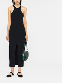 sleeveless fitted midi dress Realised in an all-black hue, this fitted midi dress from Nanushka hugs from the neckline to the hips, creating a seamless silhouette. A high front slit adds a subtle hint of drama. Highlights - Black - Seam detailing - High neck - Sleeveless - Racerback - Front slit - Mid-length - Stretch-design Imported Composition Viscose 63%, Nylon 37% SIZE & FIT Model measurements Height 5 ft 10 in(1.77 m) Bust/Chest 32.67 in(83 cm) Hips 35.43 in(90 cm) Waist 23.62 in(60 cm) Washing instructions Dry Clean Only