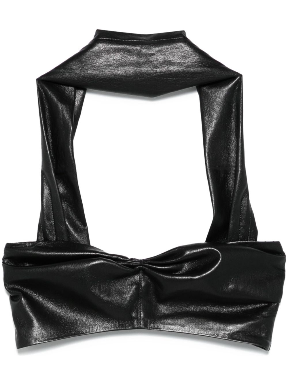 sleeveless top Highlights - Black - Buckle fastening - Halterneck Imported Composition Polyurethane 100% SIZE & FIT Model measurements Height 5 ft 10 in(1.78 m) Bust/Chest 33.46 in(85 cm) Hips 36.22 in(92 cm) Waist 23.22 in(59 cm) FittingInformation Designed for a close fit throughout Made from a midweight fabric