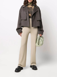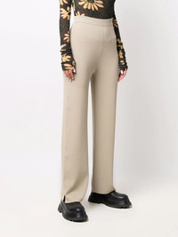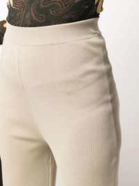 straight-leg knitted trousers sand-beige knitted construction high waist elasticated waistband straight leg ankle-length Imported Composition Viscose 63%, Nylon 37% SIZE & FIT Model measurements Height 5 ft 9 in(1.74 m) Bust/Chest 32.28 in(82 cm) Hips 35.82 in(91 cm) Waist 24.01 in(61 cm) Washing instructions Dry Clean Only