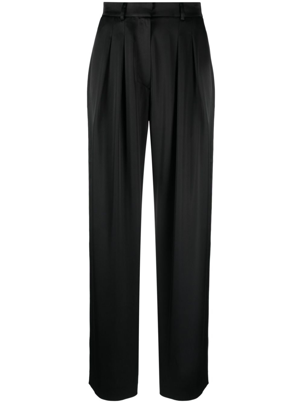 straight-leg trousers black pleat detailing straight leg concealed front fastening two rear welt pockets We've partnered with Good On You — an independent agency that rates how brands perform in relation to their impact on the planet, people and animals, with a multi-criteria rating simplified to a five points scale. In order to be awarded our conscious label, larger brands need to score a minimum of four out of five ('Good'), while smaller brands must score at least three out of five ('It's A Start'). This item comes from a brand rated three out of five ('It's A Start') by Good on You at the time it was added on FARFETCH. Please note, this is a brand-level rating and does not guarantee that this product is made with conscious materials. Learn more about what makes a product Conscious on our Conscious Criteria page Imported Composition Acetate 81%, Recycled Polyester 19% Lining: Acetate 57%, Viscose 43% SIZE & FIT Model measurements Height 5 ft 10 in(1.78 m) Bust/Chest 32.67 in(83 cm) Hips 35.43 in(90 cm) Waist 23.22 in(59 cm) FittingInformation Designed for a straight-leg fit, these trousers allow for a close fit at the waist and an unrestricted, comfortable fit over the leg Made from a midweight non-stretch fabric, this piece offers minimal elasticity when worn This piece fits true to size – take your usual size Washing instructions Machine Wash