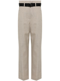 straight-leg trousers Highlights - Taupe - Wool - Twill weave - High-waisted - Concealed front button, hook and zip fastening - Pressed crease - Detachable and adjustable waist belt - Belt loops - Two side slit pockets - Two faux rear welt pockets - Partial lining - Straight leg Imported Composition Wool 100%, Polyester 100% SIZE & FIT FittingInformation Designed with a wide-leg cut, these trousers allow for a close fit at the waist and offer a loose and roomy fit over the leg The belt offers adjustability for fitted preferences Made from a midweight non-stretch fabric