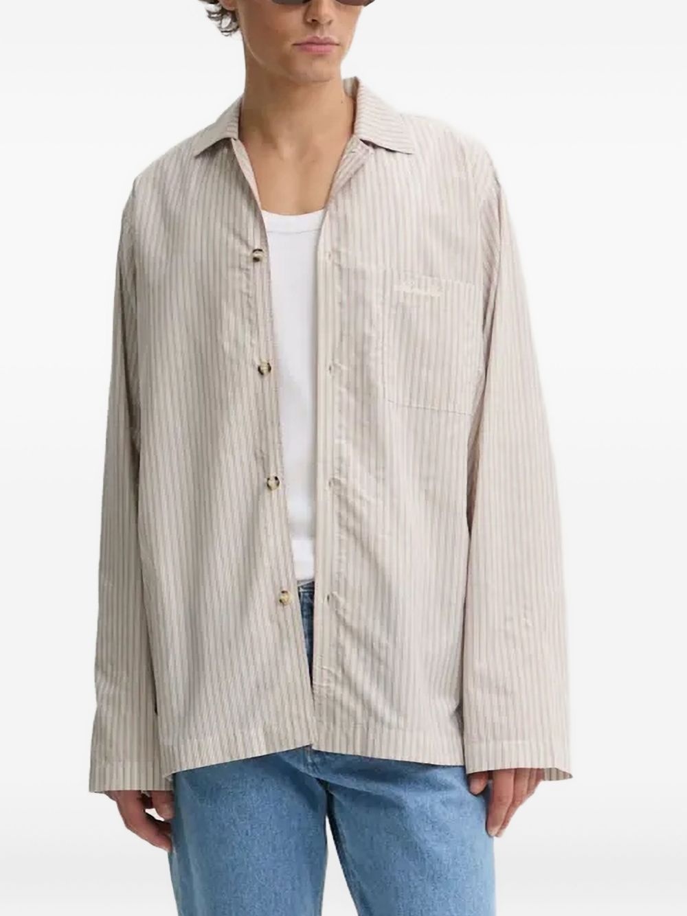 striped logo-embroidered shirt Highlights - Beige - Vertical stripes - Embroidered logo - Patch pocket - Button front - Classic collar - Long sleeves Imported Composition TENCEL™ 55%, Cotton 45% Washing instructions Dry Clean Only