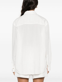 striped shirt Highlights - White - Front button fastening - Straight-point collar - Long sleeves - Buttoned cuffs Imported Composition Viscose 85%, Polyamide 13%, Cotton 2% SIZE & FIT Model measurements Height 5 ft 9 in(1.76 m) Bust/Chest 31.1 in(79 cm) Hips 36.61 in(93 cm) Waist 24.8 in(63 cm)
