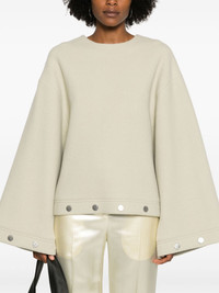 studded bell-sleeves top Highlights - Blush beige - Wool blend - Brushed effect - Stud detailing - Bell sleeves - Rear press-stud fastening - Crew neck - Drop shoulder - Straight hem Imported Composition Wool 75%, Polyamide 25% SIZE & FIT Model measurements Height 5 ft 11 in(1.8 m) Bust/Chest 32.67 in(83 cm) Hips 35.82 in(91 cm) Waist 25.98 in(66 cm) FittingInformation Made from a midweight non-stretch fabric, this piece offers minimal elasticity when worn