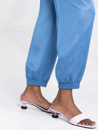 tapered satin trousers Crafted from fluid blue satin, these NANUSHKA tapered trousers are designed with an elasticated waistband and ankles, creating a balloon-style leg. Highlights - Blue - Satin weave - Pressed crease - Elasticated waistband - Two side slit pockets - Two rear welt pockets - Elasticated ankles Imported Composition Lining: Acetate 56%, Viscose 44% Outer: Triacetate 64%, Polyester 36% SIZE & FIT Model measurements Height 5 ft 11 in(1.8 m) Bust/Chest 31.49 in(80 cm) Hips 36.61 in(93 cm) Waist 24.4 in(62 cm) FittingInformation This piece fits true to size. We recommend you get your regular size Designed to be fitted at the waist and hips, loose over the leg Made with a mid-weight non-stretch fabric Washing instructions Dry Clean Only