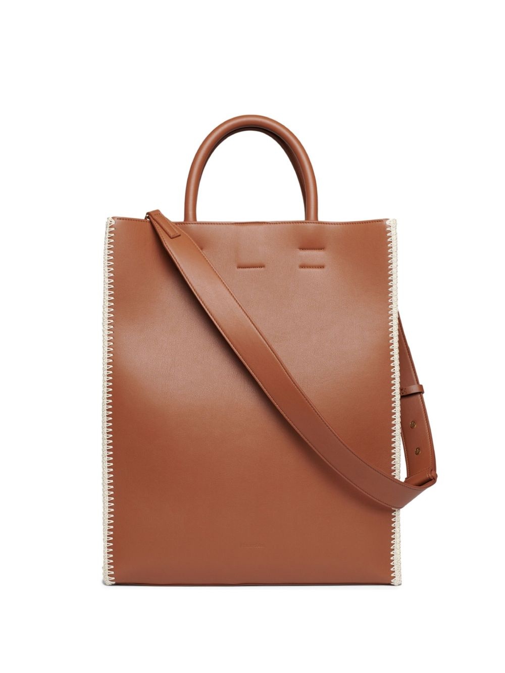 The Compass crochet-detail tote bag Highlights - Cognac brown - Hook fastening - Two rolled top handles - Adjustable detachable shoulder strap - Internal zip-fastening pocket Made in Italy Composition Outer: Cotton 100%, Polyurethane 100%, Polyester 100% Lining: Polyamide 50%, Polyester 50%