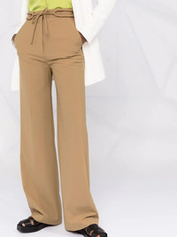 tie-waist wide-leg trousers Cut for a relaxed wide-leg fit, these Nanushka trousers are detailed with a tubular looped tie belt - one of the label's signature accents for AW22. The organic cotton construction speaks to the label's commitment to sustainability. Highlights - Camel beige - Organic cotton - Tied waist - Concealed front fastening - High-waisted - Two side inset pockets - Two rear welt pockets - Wide leg Imported Composition Organic Cotton 100% SIZE & FIT Model measurements Height 5 ft 11 in(1.8 m) Bust/Chest 31.49 in(80 cm) Hips 36.61 in(93 cm) Waist 24.4 in(62 cm) Washing instructions Dry Clean Only