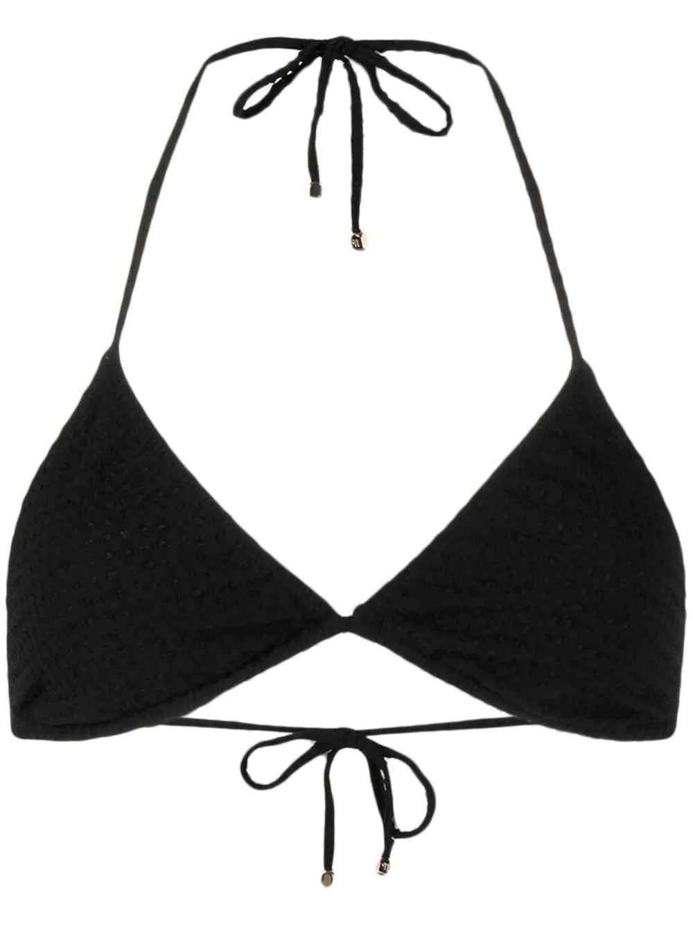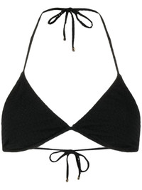 triangle bikini top Highlights - Triangle bikini top from nanushka featuring black, textured finish, triangle shape and halterneck tie fastening. be mindful to try on swimwear over your own garments.. . Imported Composition Outer: Nylon 90%, Elastane 10% Recycled Nylon 85%, Spandex/Elastane 15% Washing instructions Machine Wash