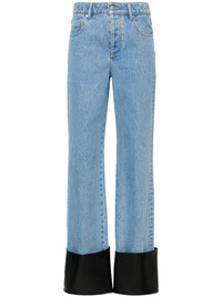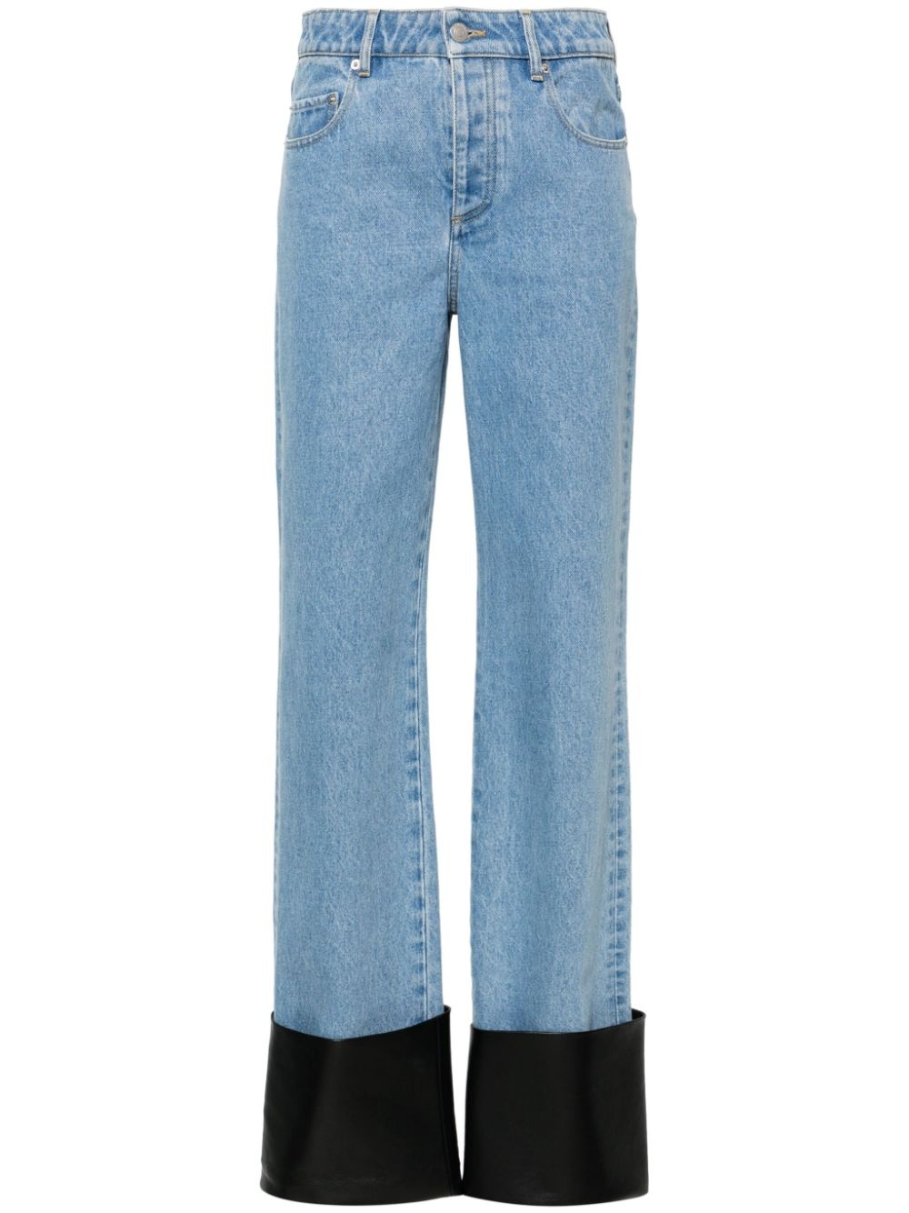 turn-up detailed straight-leg jeans Highlights - Indigo blue - Regenerative cotton-blend - Washed denim - Logo patch to the rear - Belt loops - Faux leather-panels - Concealed front button fastening - Mid-rise - Straight leg - Turn-up hem - Classic five pockets - Stitched pockets Imported Composition Lining: Cotton 50%, Polyester 50% Outer: Regenerative Cotton 100%, Polyurethane 100%, Bonded Leather 100% SIZE & FIT Model measurements Height 5 ft 10 in(1.78 m) Bust/Chest 33.07 in(84 cm) Hips 36.61 in(93 cm) Waist 24.8 in(63 cm) FittingInformation Sturdy and hard-wearing, this denim piece offers no stretch