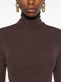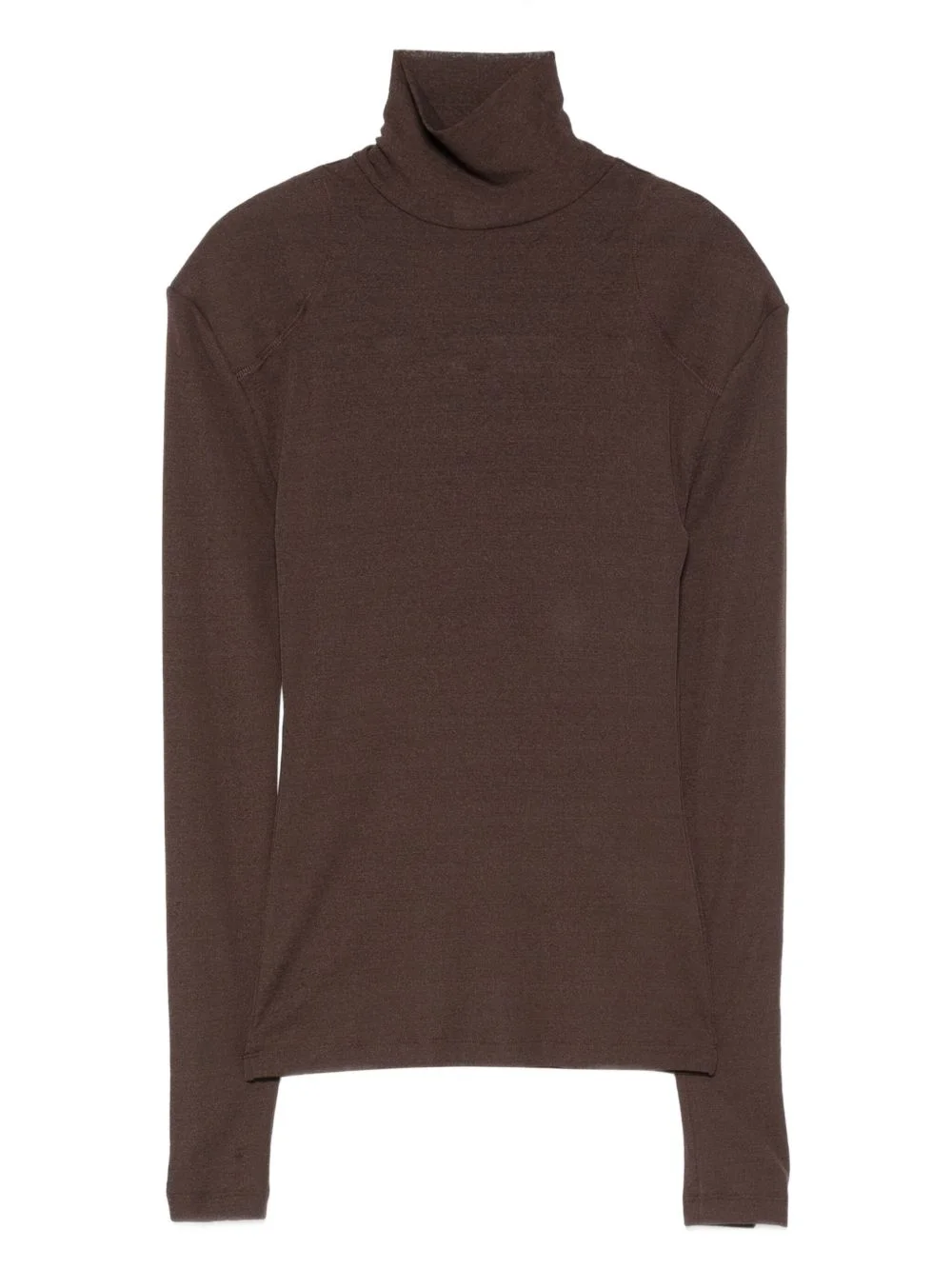 turtleneck top Highlights - Dark brown - Turtleneck - Long sleeves - Straight hem Imported Composition Polyester 100% SIZE & FIT Model measurements Height 5 ft 10 in(1.78 m) Bust/Chest 31.49 in(80 cm) Hips 37 in(94 cm) Waist 23.62 in(60 cm) Washing instructions Machine Wash
