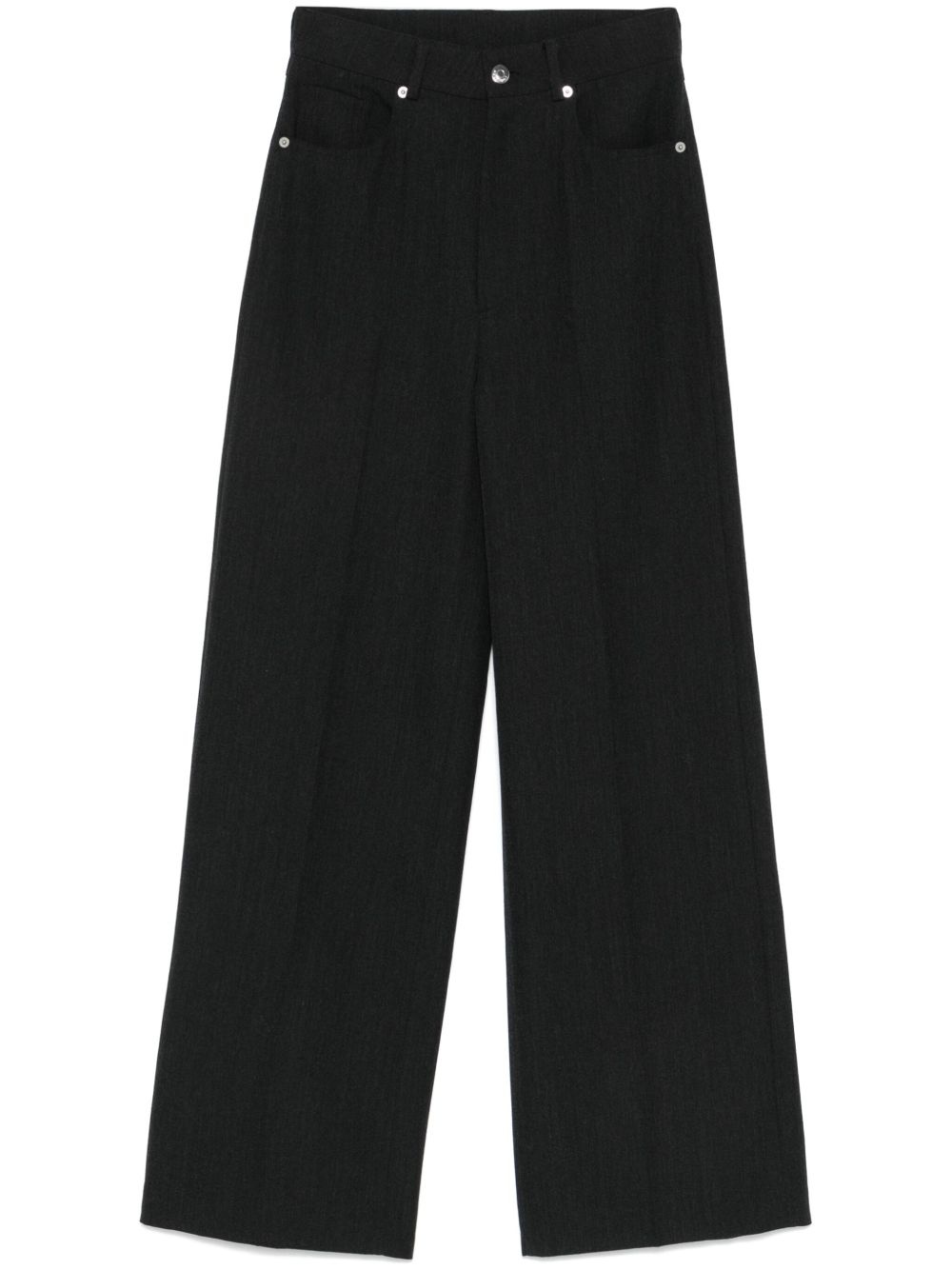 wide-leg trousers Highlights - Dark grey - Concealed fly and button fastening - Classic five pockets Imported Composition Wool 100% SIZE & FIT Model measurements Height 5 ft 10 in(1.78 m) Bust/Chest 33.46 in(85 cm) Hips 36.22 in(92 cm) Waist 23.22 in(59 cm) FittingInformation Designed with a wide-leg cut, these trousers allow for a close fit at the waist and offer a loose and roomy fit over the leg Made from a midweight non-stretch fabric