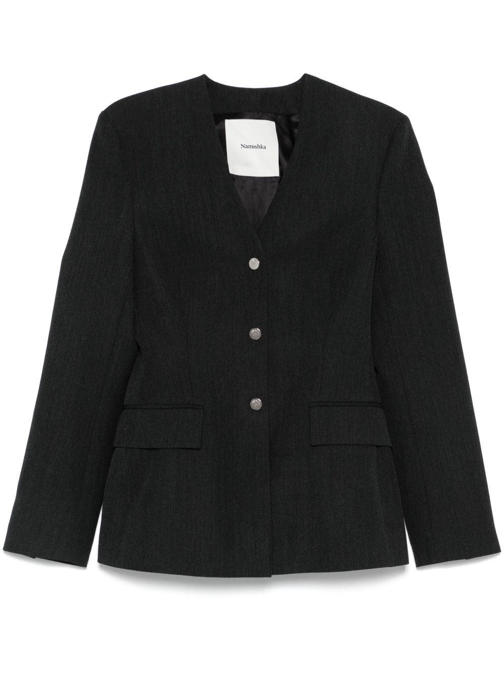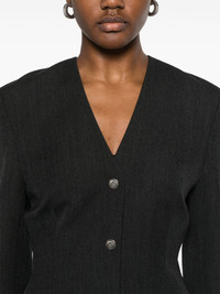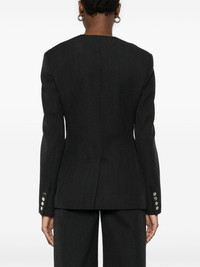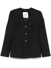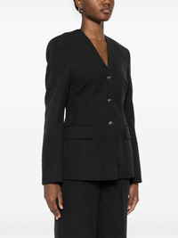 wool blazer Highlights - Charcoal grey - Front press-stud fastening - Press-stud fastening cuffs - Shoulder pads - Two side flap pockets Imported Composition Wool 100% SIZE & FIT Model measurements Height 5 ft 10 in(1.77 m) Bust/Chest 34.64 in(88 cm) Hips 35.43 in(90 cm) Waist 24.8 in(63 cm) FittingInformation Designed for a slim fit that sits just away from the body offering a close yet comfortable fit The vented hem offers movement at the rear Made from a midweight non-stretch fabric