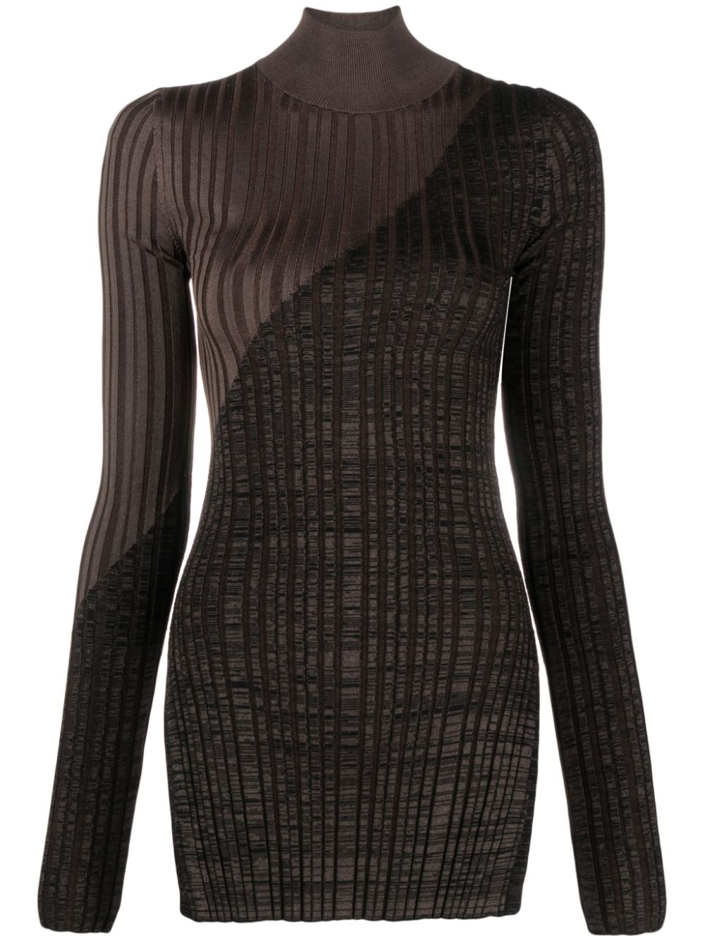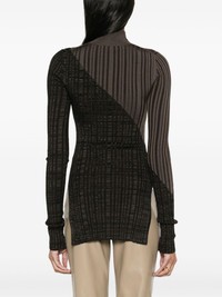 Zareen high-neck ribbed jumper Highlights - Brown/black - Merino wool - Ribbed knit - Colour-block design - High neck - Long sleeves - Side slits - Scallop hem Imported Composition Viscose 100%, Merino 100% SIZE & FIT Model measurements Height 5 ft 11 in(1.8 m) Bust/Chest 30.7 in(78 cm) Hips 35.03 in(89 cm) Waist 24.4 in(62 cm) FittingInformation Designed for a close fit throughout Made with a lightweight knit, this piece offers some stretch This piece fits true to size – take your usual size Washing instructions Dry Clean Only