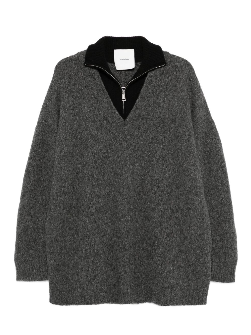 zip-up sweater Highlights - Grey - Front half zip - V-neck - Long sleeves - Ribbed cuffs and hem Imported Composition Merino 64%, Nylon 36% SIZE & FIT Model measurements Height 5 ft 10 in(1.79 m) Bust/Chest 31.88 in(81 cm) Hips 35.43 in(90 cm) Waist 23.62 in(60 cm) FittingInformation Made with a midweight knit, this piece offers some stretch Washing instructions Dry Clean Only