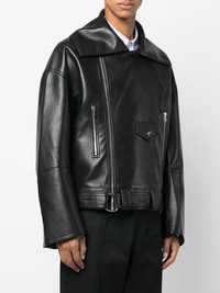 zipped biker jacket Highlights - Black - Faux leather - Classic lapels - Front zip fastening - Long sleeves - Two side zip-fastening pockets Imported Composition other fibers 50%, Polyurethane 25%, Polyester 10%, Viscose 10%, - 5% SIZE & FIT Model measurements Height 6 ft 2 in(1.87 m) Bust/Chest 38.18 in(97 cm) Hips 36.61 in(93 cm) Waist 29.13 in(74 cm) FittingInformation This piece fits true to size. We recommend you get your regular size Cut for a loose fit Made with a mid-weight non-stretch fabric Washing instructions Dry Clean Only