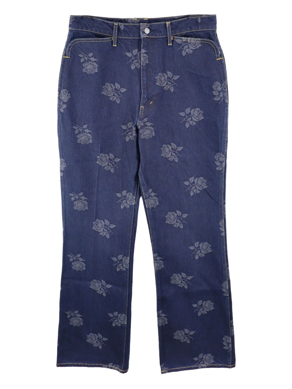 boot-cut jeans Highlights - Indigo blue - Front button and zip fastening - Belt loops - Two side slash pockets - Two rear patch pockets Imported Composition Cotton 100%