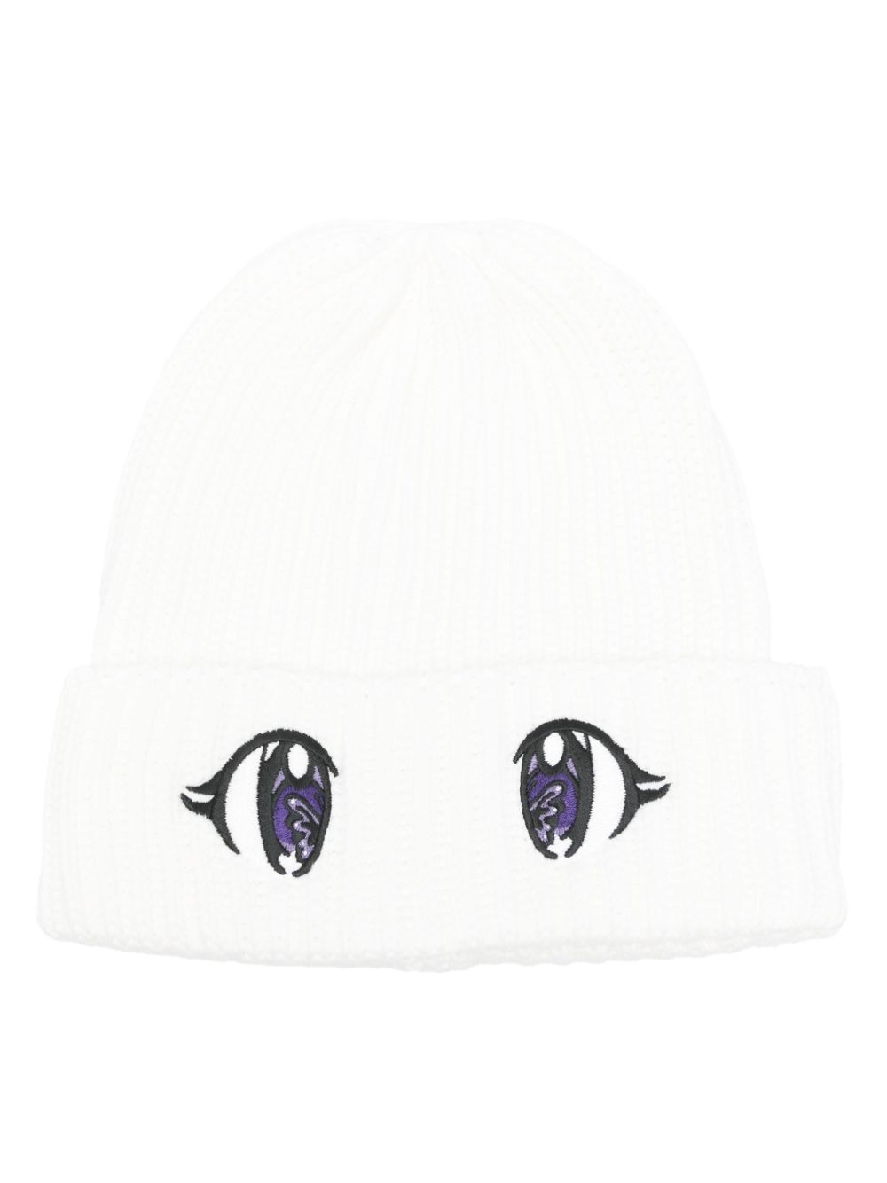 cotton beanie Highlights - White - Embroidered eyes detail - Oval crown - Turn-up brim Imported Composition Cotton 100%, Rayon 100% Washing instructions Hand Wash