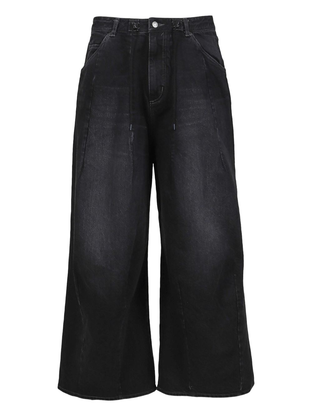 cotton jeans Highlights - Black - Front button fastening - Classic five pockets - Belt loops - Wide leg Imported Composition Cotton 100%