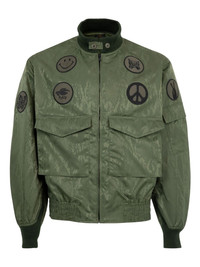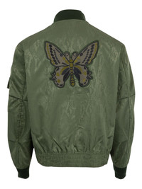 embroidered patch jacket Highlights - Olive green - Front embroidered patches - Back butterfly patch - Side flap pockets - Ribbed collar and cuffs Imported Composition Cotton 100% Washing instructions Read Manufacturer Guidelines