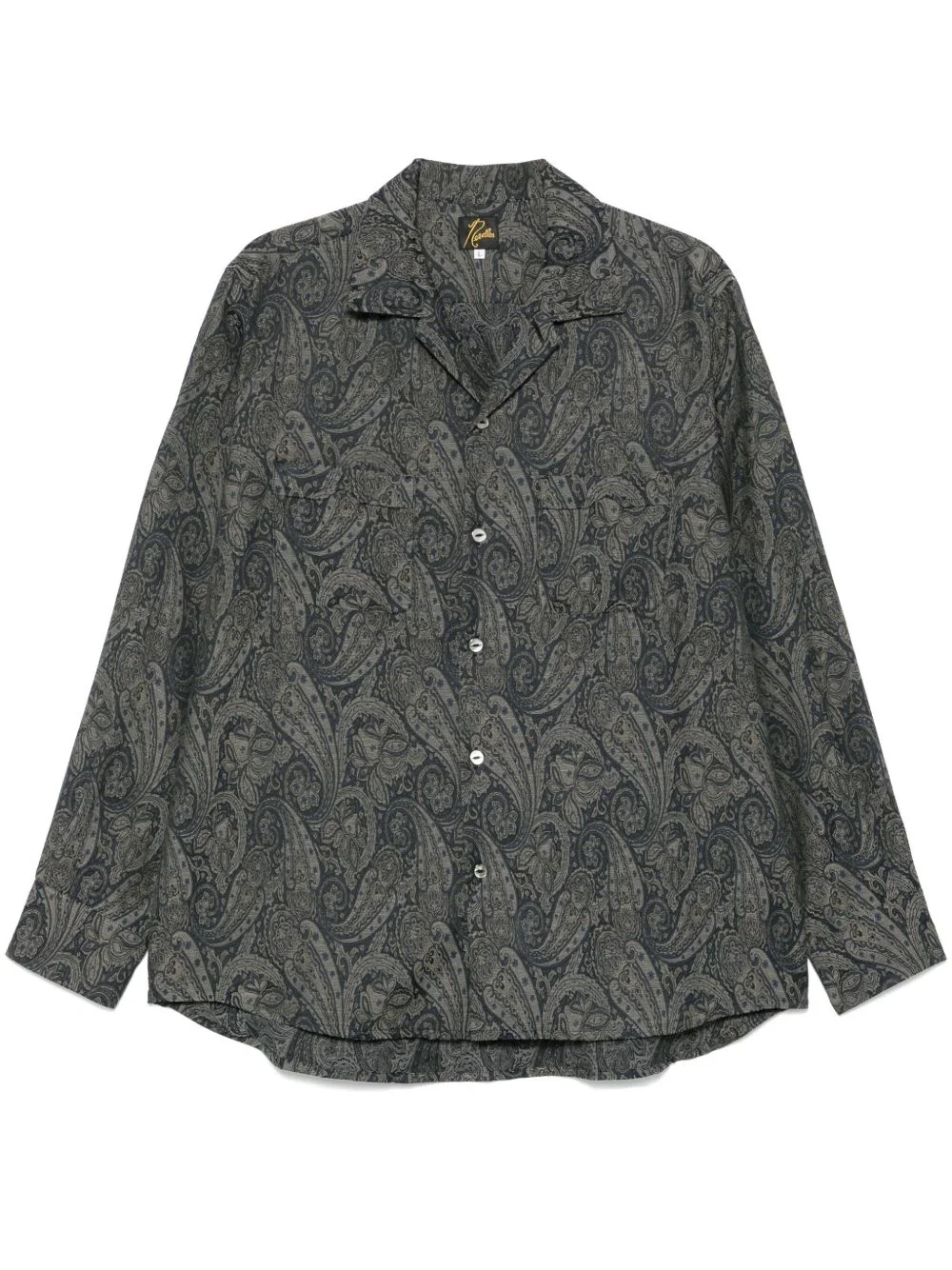paisley-jacquard shirt Highlights - Navy blue - Front button fastening - Two chest patch pockets - Camp collar - Long sleeves Imported Composition Polyester 66%, Cotton 34% SIZE & FIT Model measurements Height 6 ft 2 in(1.87 m) Bust/Chest 38.18 in(97 cm) Hips 36.61 in(93 cm) Waist 29.13 in(74 cm) FittingInformation Designed to be unstructured, offering a loose fit throughout Made from a lightweight non-stretch fabric Washing instructions Hand Wash