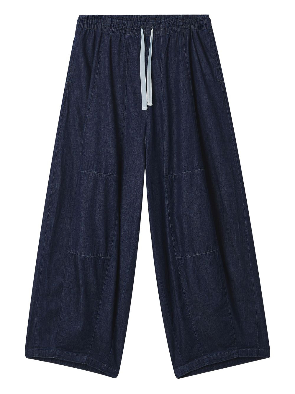 panelled drawstring jeans Highlights - Dark blue - Drawstring fastening - Side pockets - Panelled design Imported Composition Cotton 100% Washing instructions Read Manufacturer Guidelines
