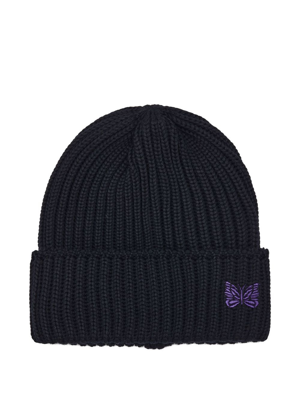 ribbed butterfly beanie Highlights - Black - Ribbed knit - Wool - Butterfly embroidery - Cuffed hem Imported Composition Wool 100%