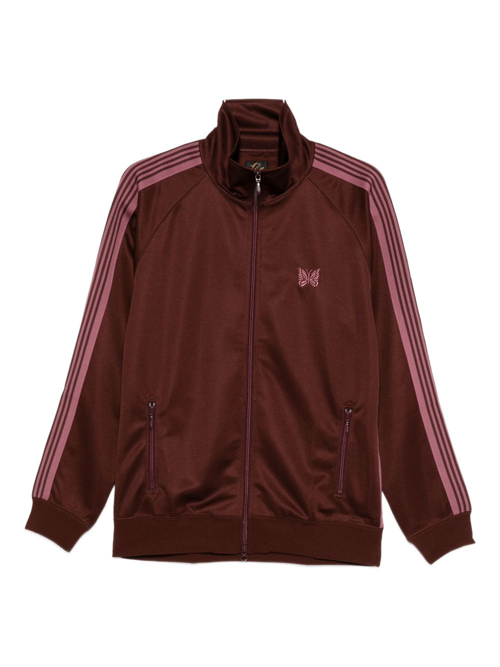 striped zip jacket Highlights - Brown - Logo detail - Zip fastening - Stand-up collar - Side zip pockets - Striped sleeves Imported Composition Polyester 100% SIZE & FIT Model measurements Height 6 ft 2 in(1.87 m) Bust/Chest 36.41 in(92.5 cm) Hips 37 in(94 cm) Waist 29.52 in(75 cm) Washing instructions Read Manufacturer Guidelines