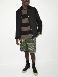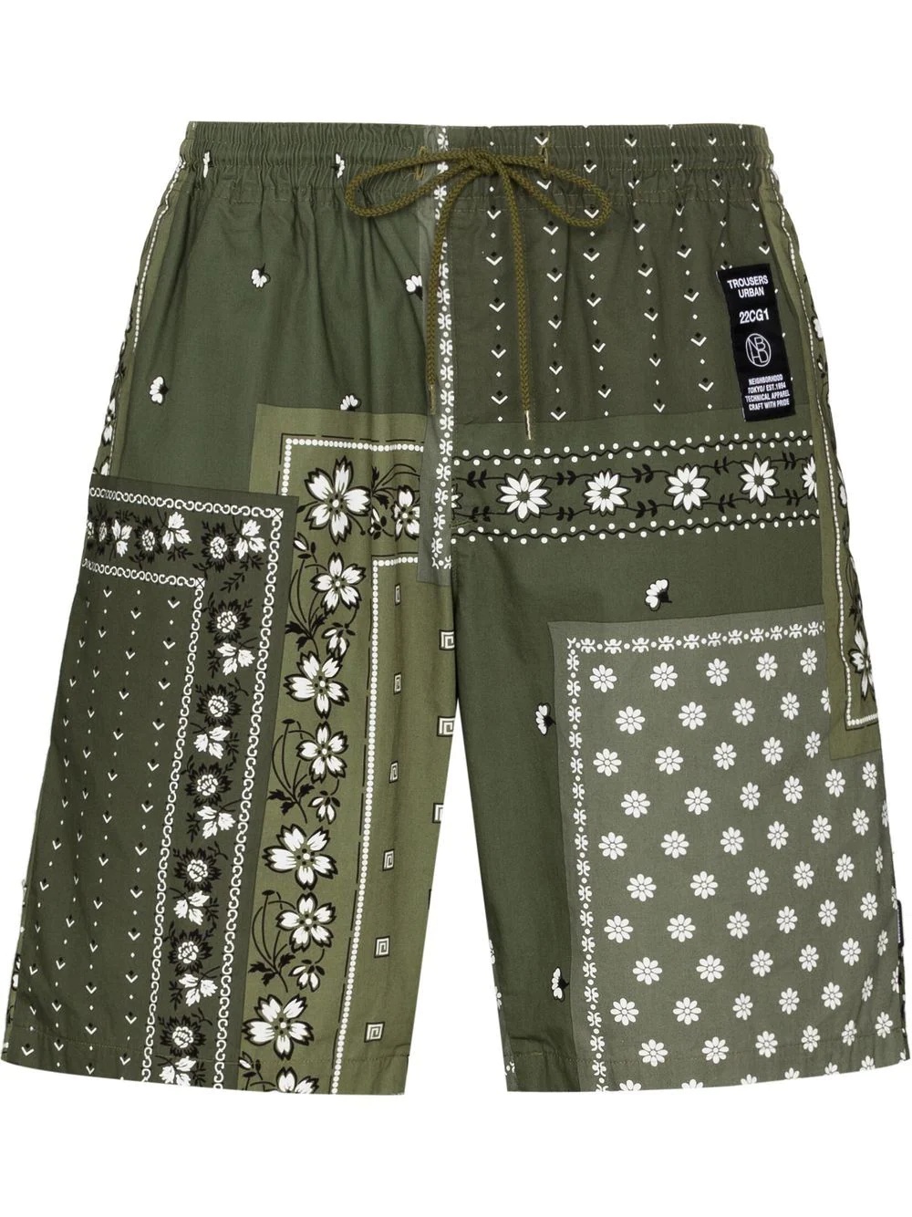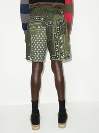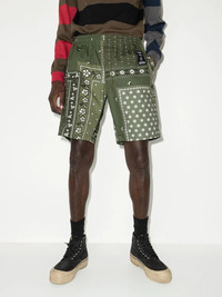 bandana patchwork Bermuda shorts bandana patchwork Bermuda shorts from NEIGHBORHOOD featuring olive green, cotton, bandana print, patchwork design, logo patch to the front, elasticated waistband, drawstring fastening, two side slit pockets and two rear patch pockets. Imported Composition Cotton 100% SIZE & FIT Model measurements Height 6 ft 1 in(1.86 m) Bust/Chest 34.25 in(87 cm) Hips 35.82 in(91 cm) Waist 27.95 in(71 cm) FittingInformation This piece fits true to size. We recommend you get your regular size Cut for a loose fit Made with a mid-weight non-stretch fabric Washing instructions Hand Wash