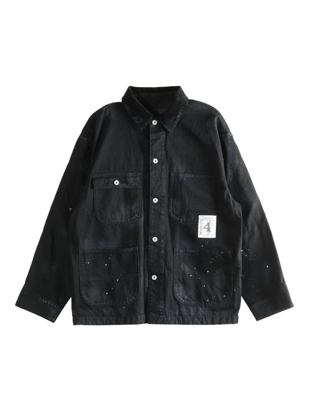 buttoned corduroy-collar jacket Highlights - Black - Corduroy collar - Patch pocket - Button fastening - Label patch - Paint splatter detail Made in United States Composition Cotton 100% Washing instructions Read Manufacturer Guidelines