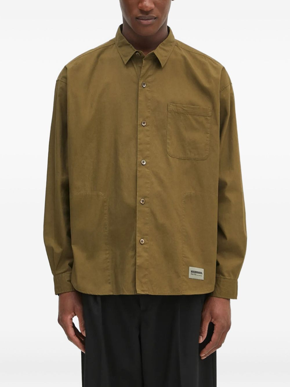 buttoned pocket shirt Highlights - Olive green - Long sleeves - Button fastening - Chest pocket - Branded label Imported Composition Cotton 100% Washing instructions Read Manufacturer Guidelines