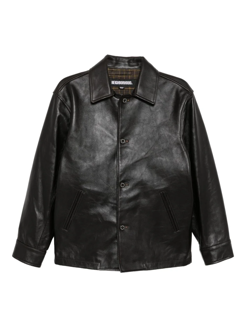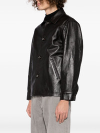 leather jacket Highlights - Brown - Front button fastening - Two front jetted pockets - Buttoned cuffs - Straight hem Imported Composition Lining: Cotton 100% Outer: Calf Leather 100% SIZE & FIT Model measurements Height 6 ft 1 in(1.86 m) Bust/Chest 33.46 in(85 cm) Hips 35.43 in(90 cm) Waist 31.1 in(79 cm) FittingInformation Designed to be unstructured, offering a loose fit throughout Firm leather offering little flexibility to maintain its durability and sturdiness Washing instructions Specialist Cleaning