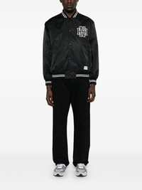 logo-patch baseball jacket Highlights - Black - Front press-stud fastening - Two side welt pockets - Long sleeves - Ribbed trim Imported Composition Lining: Polyester 100% Outer: Nylon 100% SIZE & FIT Model measurements Height 6 ft 0 in(1.84 m) Bust/Chest 37.79 in(96 cm) Hips 37 in(94 cm) Waist 31.49 in(80 cm) FittingInformation Designed to be unstructured, offering a loose fit throughout The ribbed hem offers a close, comfortable fit Made from a midweight non-stretch fabric