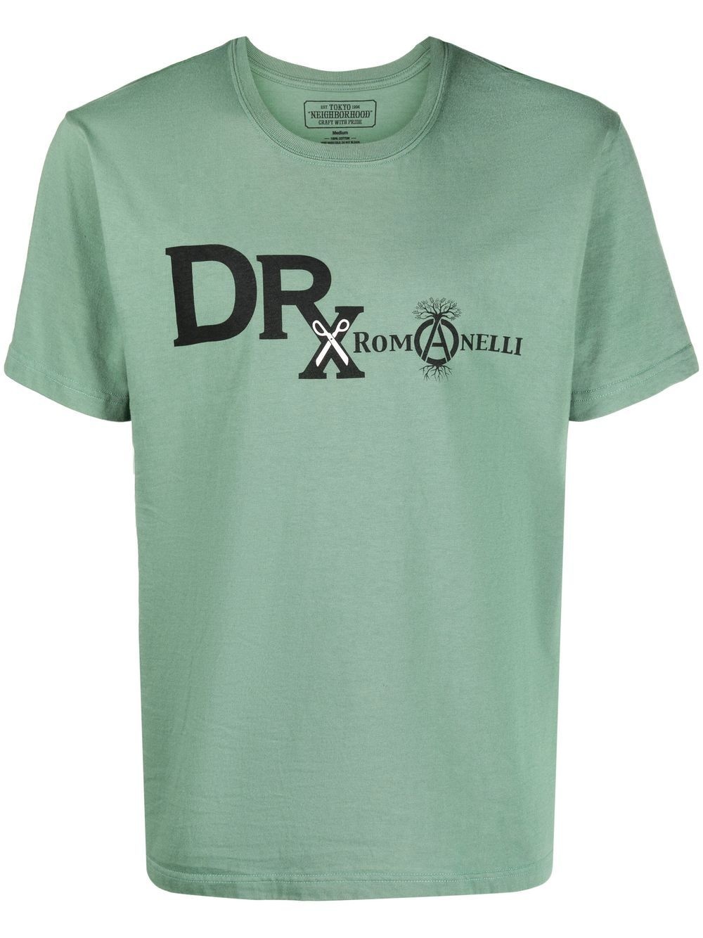 logo-print detail T-shirt olive green cotton logo print to the front round neck short sleeves straight hem Imported Composition Cotton 100% SIZE & FIT Model measurements Height 6 ft 2 in(1.87 m) Bust/Chest 38.18 in(97 cm) Hips 36.61 in(93 cm) Waist 29.13 in(74 cm) FittingInformation This piece fits true to size. We recommend you get your regular size Cut for a relaxed fit Made with a mid-weight fabric Washing instructions Hand Wash