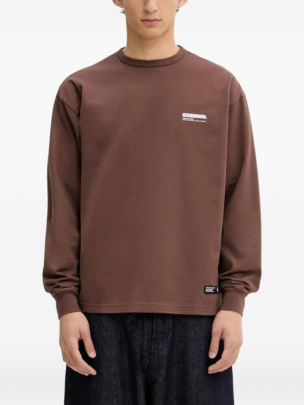 logo-print long-sleeve sweatshirt Highlights - Brown - Long sleeves - Crew neck - Logo print - Straight hemline Imported Composition Cotton 100% Washing instructions Read Manufacturer Guidelines
