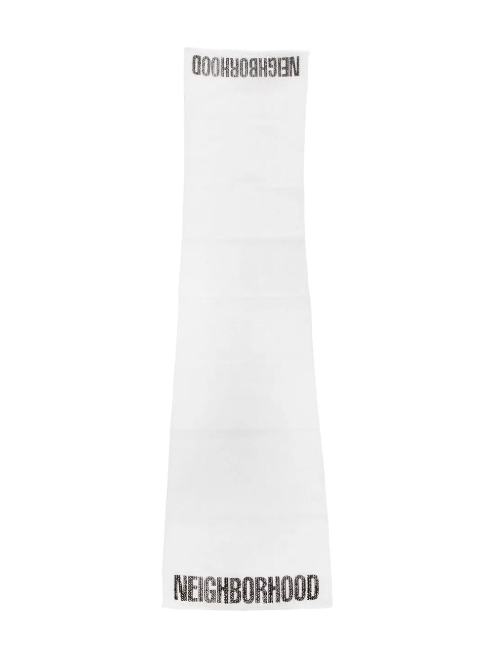 logo-print scarf Highlights - White - Ribbed texture - Logo detail - Black logo - Both ends Imported Composition Fabric 100% Washing instructions Read Manufacturer Guidelines