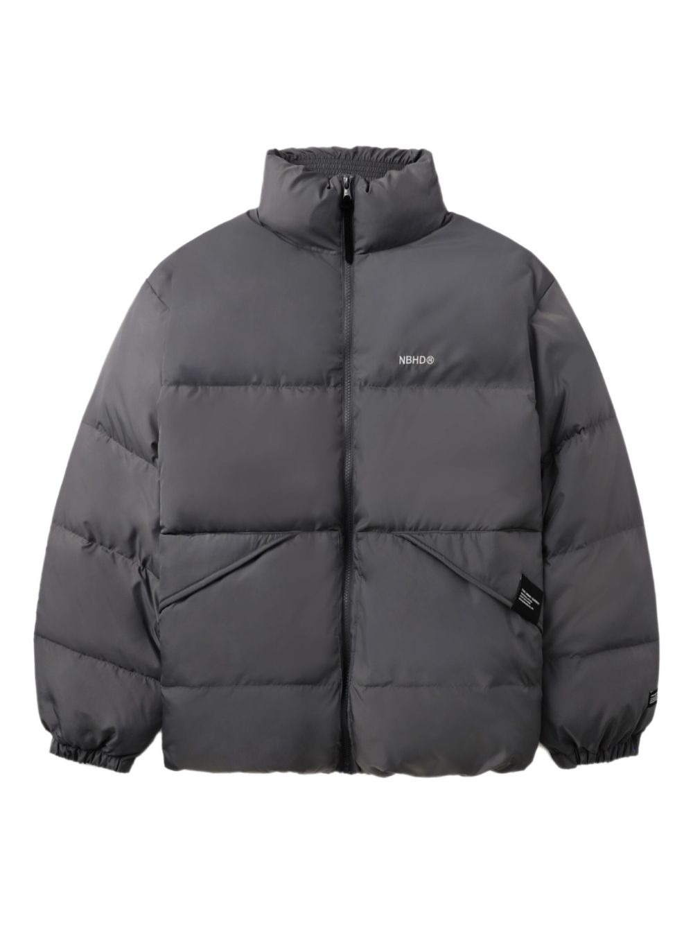 quilted padded jacket Highlights - Grey - Quilted design - Stand collar - Zip fastening - Elasticated cuffs - Logo detail Imported Composition Polyester 100% SIZE & FIT FittingInformation Designed to be unstructured, offering a loose fit throughout Made from a padded non-stretch fabric, giving it no natural elasticity Washing instructions Read Manufacturer Guidelines