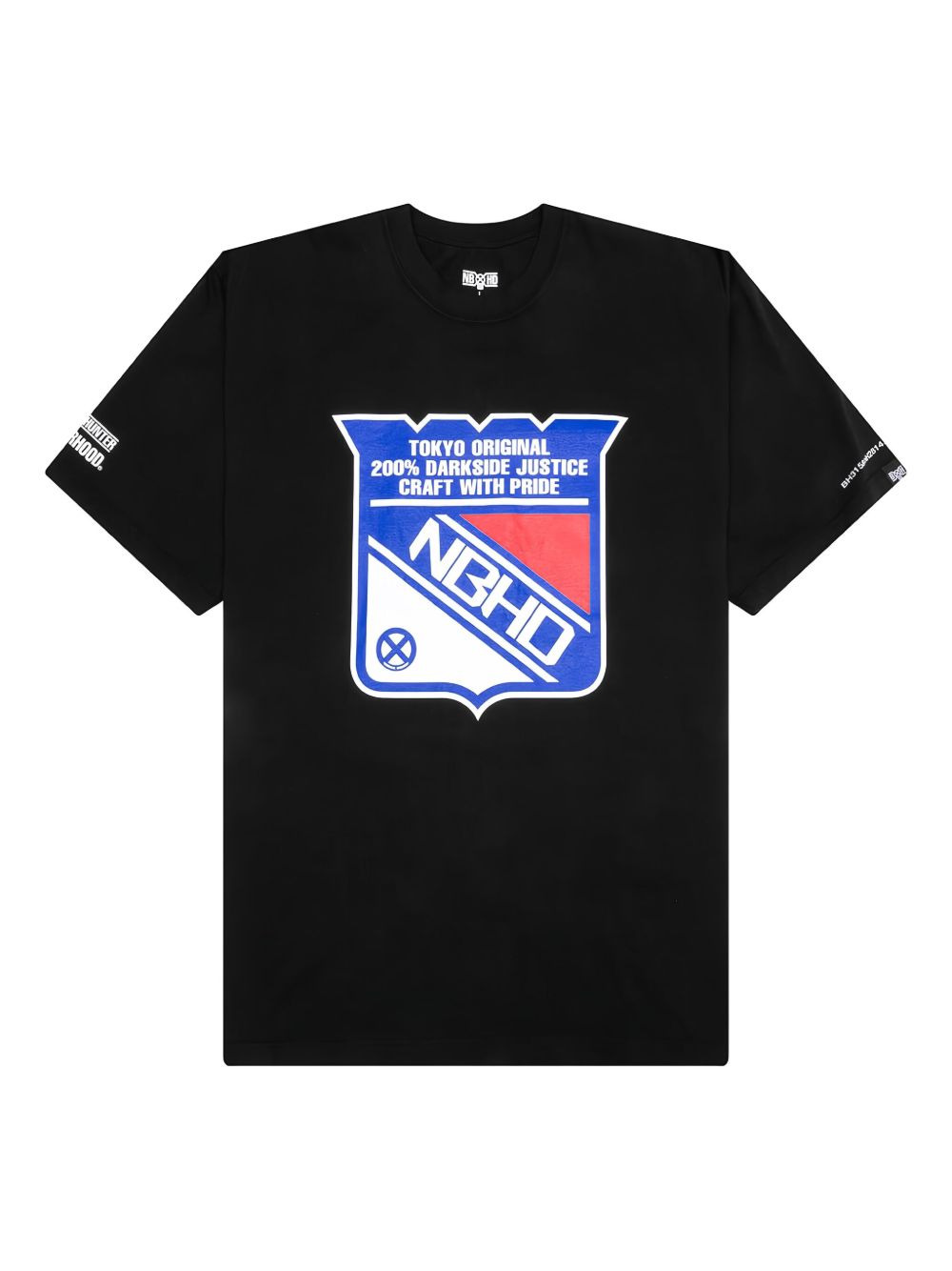 skull-logo graphic tee Highlights - Black - Graphic print - Nbhd logo - Skull motif - Hockey-style shield emblem - Short sleeves Made in United States Composition Cotton 100% Washing instructions Read Manufacturer Guidelines