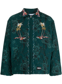 Souvenir jacquard shirt jacket Highlights - Dark green/multicolour - Cotton blend - Patterned jacquard - Embroidered design - Logo patch to the front - Spread collar - Front zip fastening - Drop shoulder - Long sleeves - Two side slit pockets Imported Composition Outer: Polyester 58%, Cotton 42% Lining: Polyester 100% SIZE & FIT Model measurements Height 6 ft 2 in(1.87 m) Bust/Chest 34.25 in(87 cm) Hips 36.22 in(92 cm) Waist 29.52 in(75 cm) FittingInformation Designed to be unstructured, offering a loose fit throughout Made from a padded non-stretch fabric, giving it no natural elasticity This piece fits true to size – take your usual size