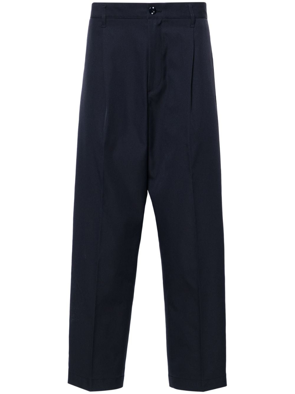 Tuck trousers Highlights - Midnight blue - Twill weave - Logo tag - Logo patch to the rear - Button fly fastening - Belt loops - Pressed crease - Straight leg - Two side slit pockets - Two rear welt pockets Imported Composition Polyester 100% SIZE & FIT Model measurements Height 6 ft 2 in(1.87 m) Bust/Chest 36.41 in(92.5 cm) Hips 37 in(94 cm) Waist 29.52 in(75 cm) FittingInformation Designed for a tapered leg, offering a loose unrestricted fit over the leg with a closer fit towards the ankle Made from a midweight non-stretch fabric, this piece offers minimal elasticity when worn This piece fits true to size – take your usual size