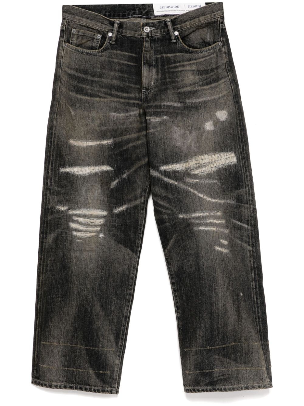 wide-leg jeans Highlights - Black - Cotton - Denim - Washed denim - Concealed zip-fly and button fastening - Distressed effect - Whiskering effect at the thighs - Belt loops - Classic five pockets - Embroidered logo to the rear pocket - Logo patch to the rear - Full-length - Wide leg Imported Composition Cotton 100% SIZE & FIT Model measurements Height 6 ft 2 in(1.88 m) Bust/Chest 34.25 in(87 cm) Hips 34.64 in(88 cm) Waist 26.77 in(68 cm) FittingInformation Designed for a tapered leg, these jeans allow a loose unrestricted fit over the leg with a closer fit towards the ankle Sturdy and hard-wearing, this denim piece offers no stretch