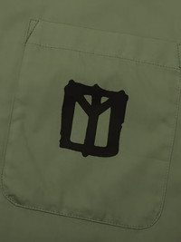 x Babylon BD graphic-print chest-pocket shirt Highlights - Olive green - Graphic print - Short sleeves - Button fastening - Chest pocket Made in United States Composition Cotton 100% Washing instructions Read Manufacturer Guidelines