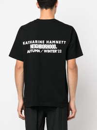 x Katharine Hamnett slogan-print T-shirt black cotton slogan print to the front logo print to the rear crew neck short sleeves straight hem Imported Composition Cotton 100% SIZE & FIT Model measurements Height 6 ft 1 in(1.85 m) Bust/Chest 35.82 in(91 cm) Hips 37.79 in(96 cm) Waist 29.13 in(74 cm) FittingInformation This piece fits true to size. We recommend you get your regular size Cut for a loose fit Made with a mid-weight fabric Washing instructions Machine Wash