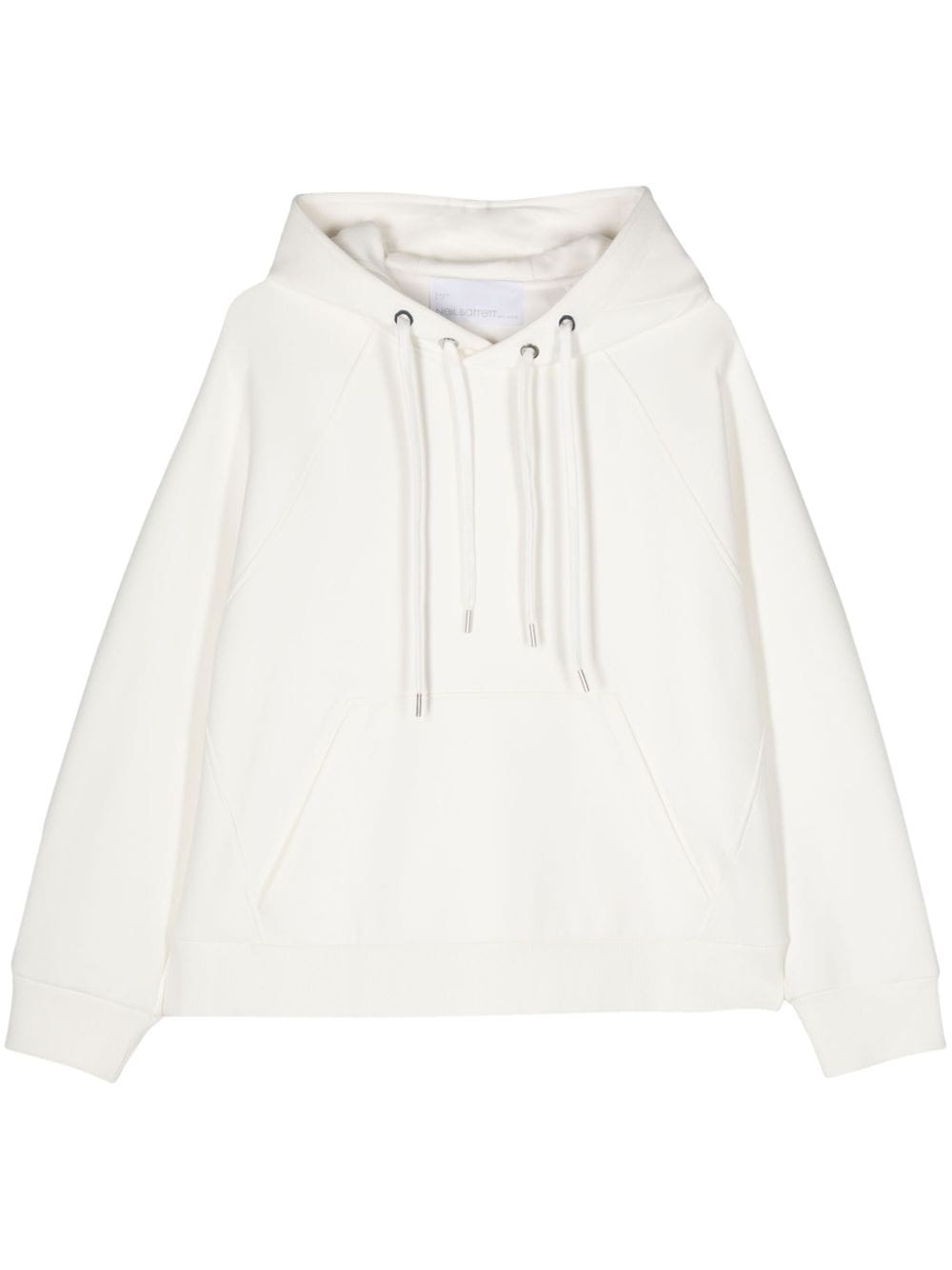 Easy Raglan jersey hoodie Highlights - Cream white - Cotton blend - Jersey texture - Drawstring hood - Long raglan sleeves - Front pouch pocket - Ribbed cuffs and hem Made in Italy Composition Outer: Cotton 74%, Polyester 21%, Elastane 5% Lining: Polyester 100% SIZE & FIT FittingInformation Designed for a relaxed fit, this piece allows for comfort and movement when worn Made from a midweight stretch fabric, this piece offers elasticity and flexibility when worn