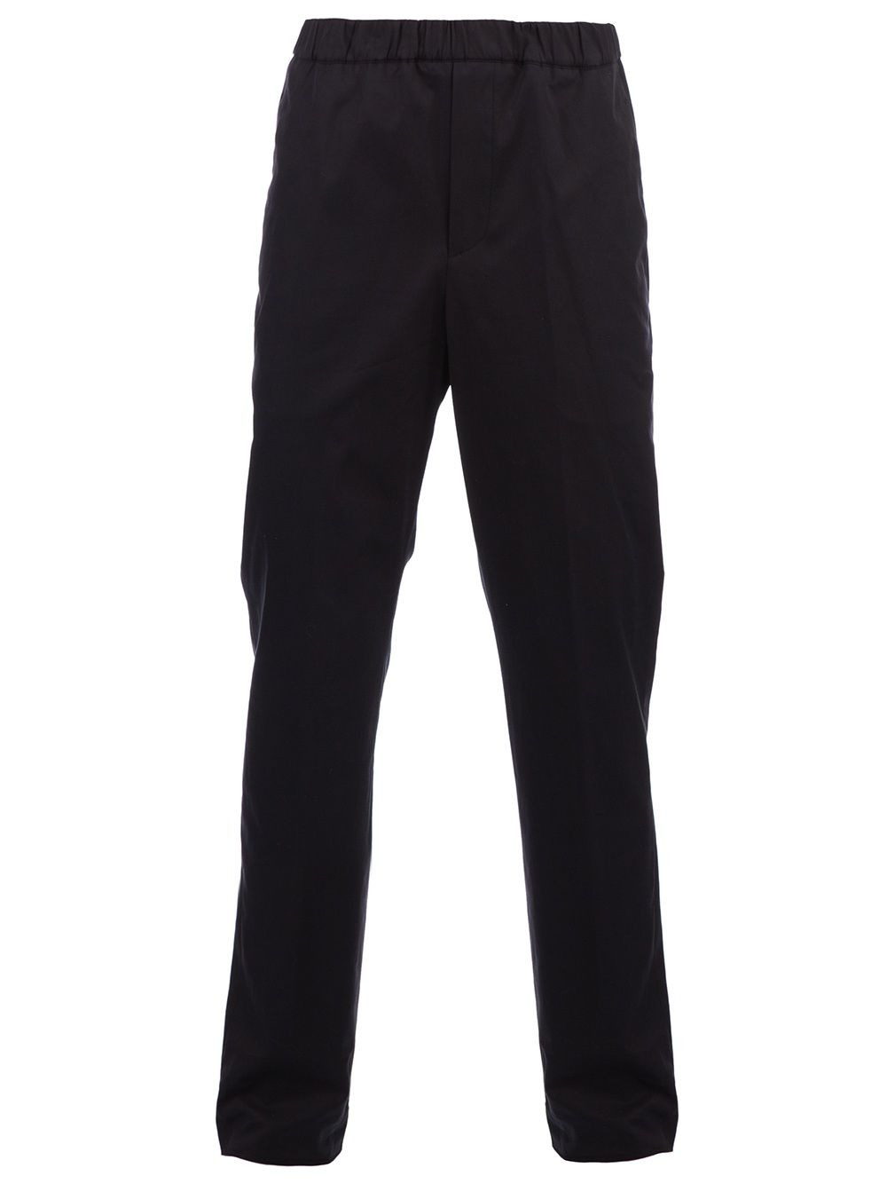 elasticated waist trouser Dark blue cotton blend trouser from Neil Barrett featuring an elasticated waist and a straight leg. Made in Italy Composition Cotton 97%, Spandex/Elastane 3% Washing instructions Machine Wash