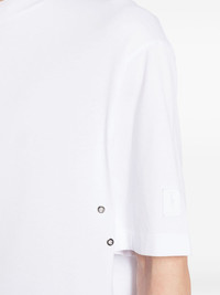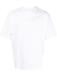 logo-applique eyelet-detail T-shirt Highlights - White - Cotton - Applique logo - Eyelet detailing - Crew neck - Short sleeves - Straight hem Imported Composition Body: Cotton 100% Outer: Cotton 100% SIZE & FIT Model measurements Height 6 ft 2 in(1.87 m) Bust/Chest 33.07 in(84 cm) Hips 35.43 in(90 cm) Waist 26.77 in(68 cm) FittingInformation Designed for an oversized fit, offering additional room throughout Made from a midweight non-stretch fabric, this piece offers minimal elasticity when worn This piece fits true to size – take your usual size Washing instructions Machine Wash