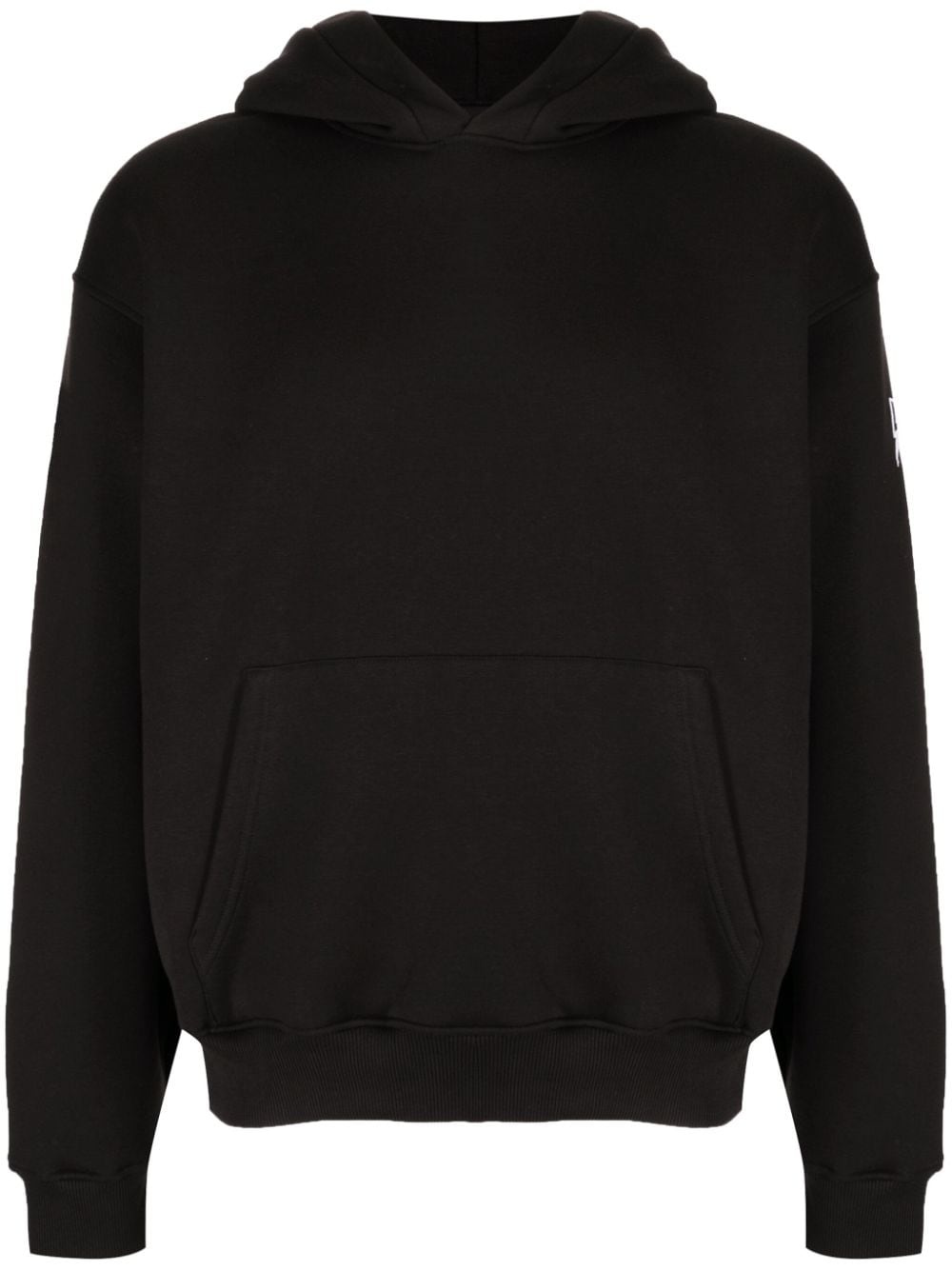 Minimalist Bolts applique-detail hoodie Highlights - Black - Cotton blend - Knitted construction - Embroidered logo at the sleeve - Classic hood - Front pouch pocket - Drop shoulder - Long sleeves - Ribbed cuffs and hem - Straight hem Made in Italy Composition Trims: Cotton 95%, Elastane 5% Body: Cotton 65%, Polyester 35% SIZE & FIT Model measurements Height 6 ft 2 in(1.87 m) Bust/Chest 33.07 in(84 cm) Hips 35.43 in(90 cm) Waist 26.77 in(68 cm) FittingInformation Designed to be unstructured, offering a loose fit throughout The ribbed hem offers a close, comfortable fit Made from a midweight stretch fabric, this piece offers elasticity and flexibility when worn This piece fits true to size – take your usual size
