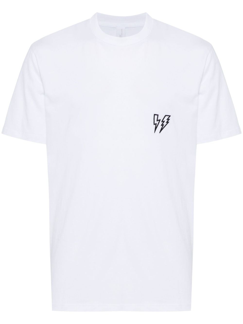 Thunderbolt-patch cotton t-shirt Highlights - White - Cotton - Lightweight jersey - Signature thunderbolt patches - Crew neck - Short sleeves - Straight hem Made in Italy Composition Cotton 100% SIZE & FIT FittingInformation Designed for a slim fit, offering a comfortable fit that sits just away from the body Made from a midweight non-stretch fabric, this piece offers minimal elasticity when worn